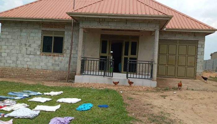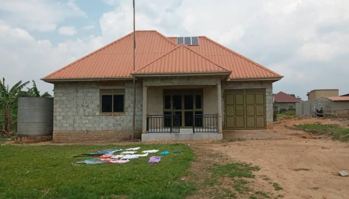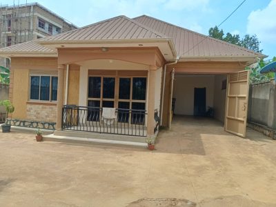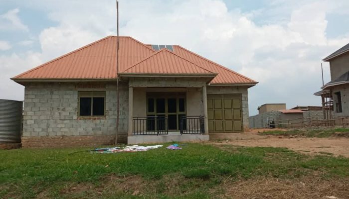 We present you a house on market located wakiso kakiri at only 120m having 3 bedrooms, sitting and dining room wz 2 toilets, kitchen, wardrobe,plot size 100 by 100 ft with ready land title on table